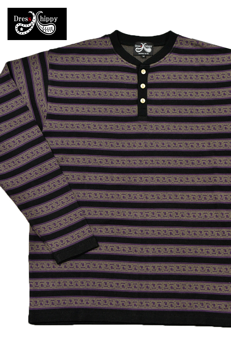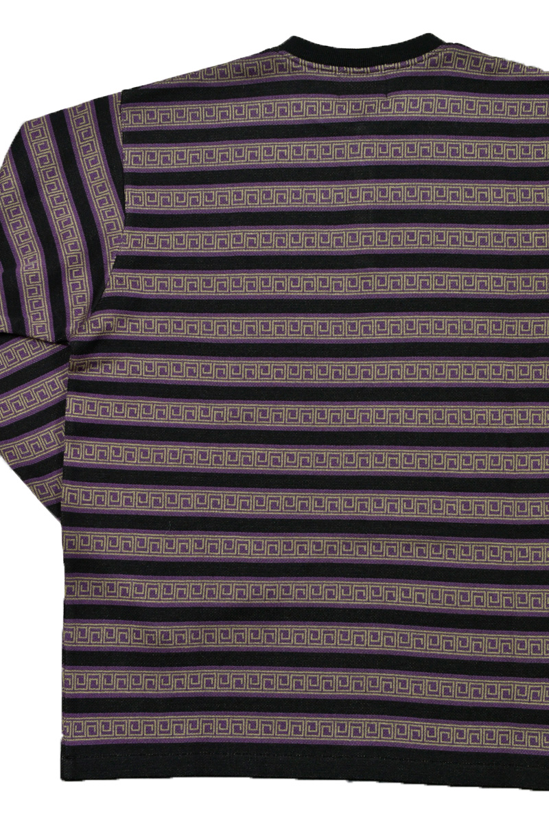 オリエンタルボーダー柄のヘンリーネックLS Tee。