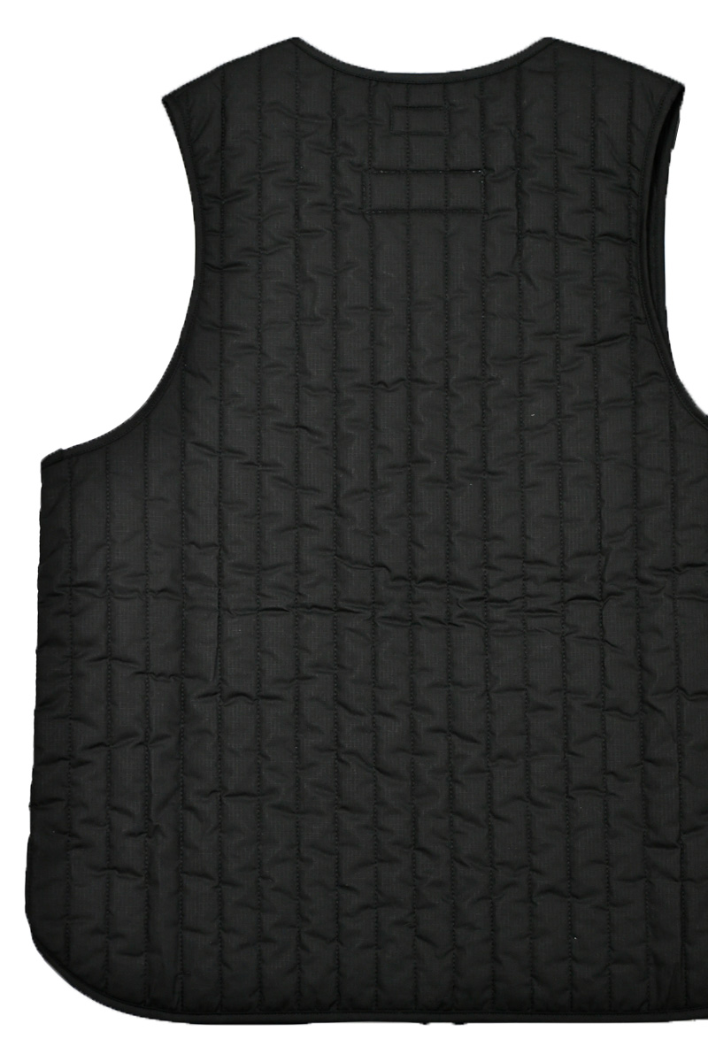 生地はオイルドコットンシリーズでお馴染み「British Millerain社」のワックスドコットンリップストップに中綿を入れたオリジナルキルト素材。さらに裏地には保温性に優れた東レの〝ソーラーセンサーL〟を採用することで時にはインナー、時にはアウターとしても機能するベストに仕上がりました。
