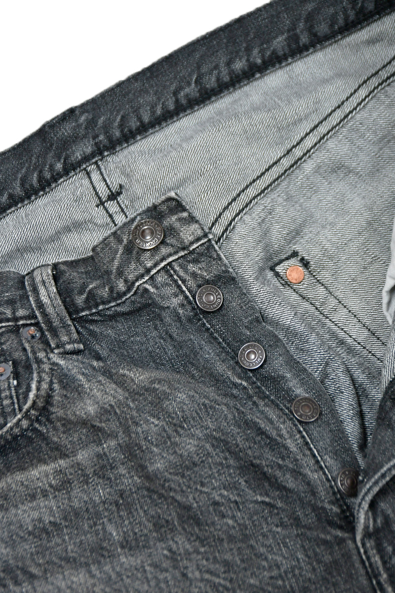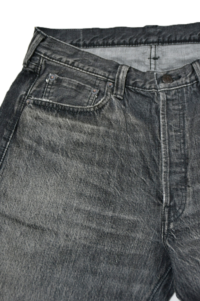 インディゴ染めと比較してゆっくりとした経年変化ではありますが、ロープ染色されたブラックは徐々にタテ落ちも楽しんでいただくことが出来ます。