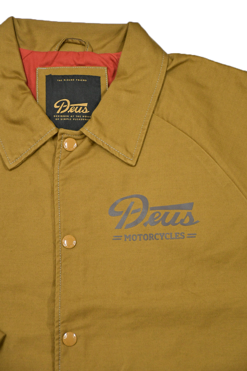 道端のピットストップや忘れ去られたハイウェイで飲むコーヒーが燃料となり、オイルまみれのノスタルジーとともに、充実した日々の感性が奏でられる。 レギュラーフィットのサイロス・メカニック・ジャケットは、ノスタルジアと前進の間にあるショットガンに乗っている。レギュラーフィットのコーチジャケット。フロントとバックにDEUSロゴアートワーク。ドローコードで裾の調節が可能。リブ編み内ストームカフス。表地はコットン・ナイロンポリエステル混紡サテン素材。ポリエステルミックスのブランケット裏地を使用。ガーメント・ストーンウォッシュ加工。